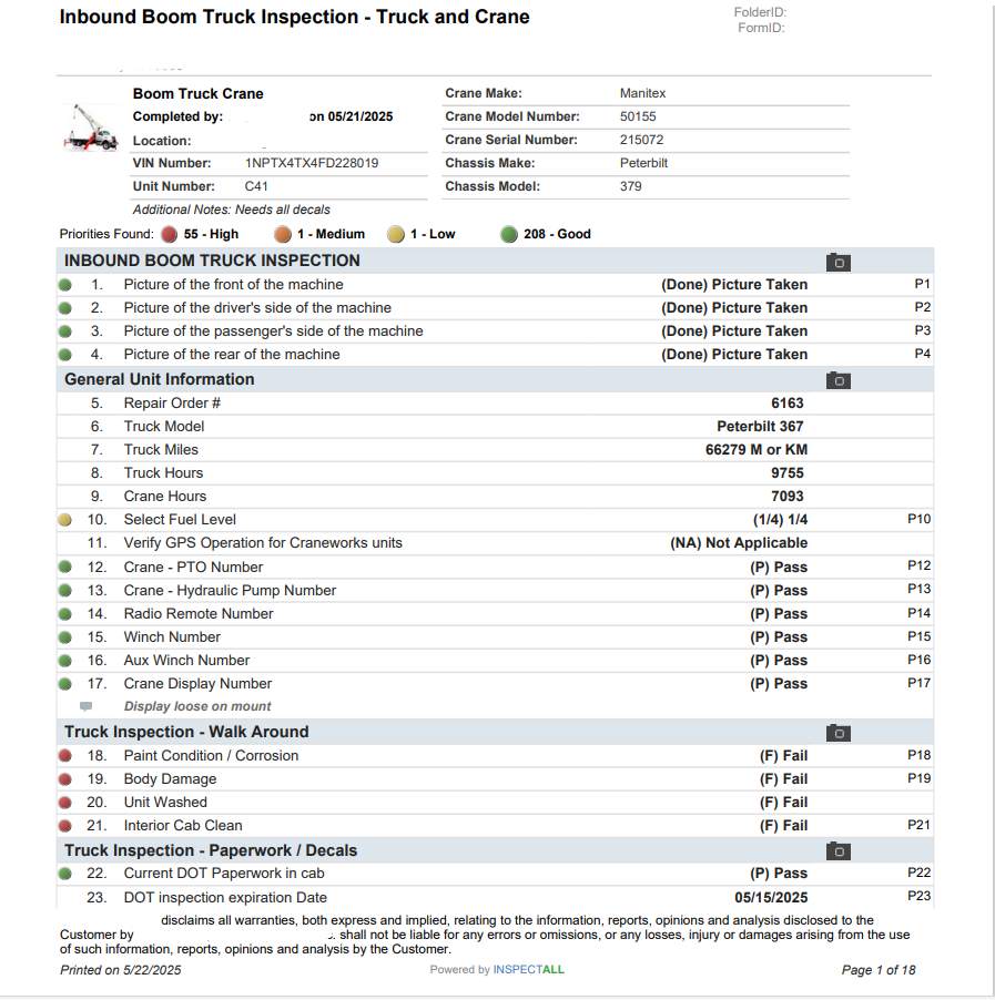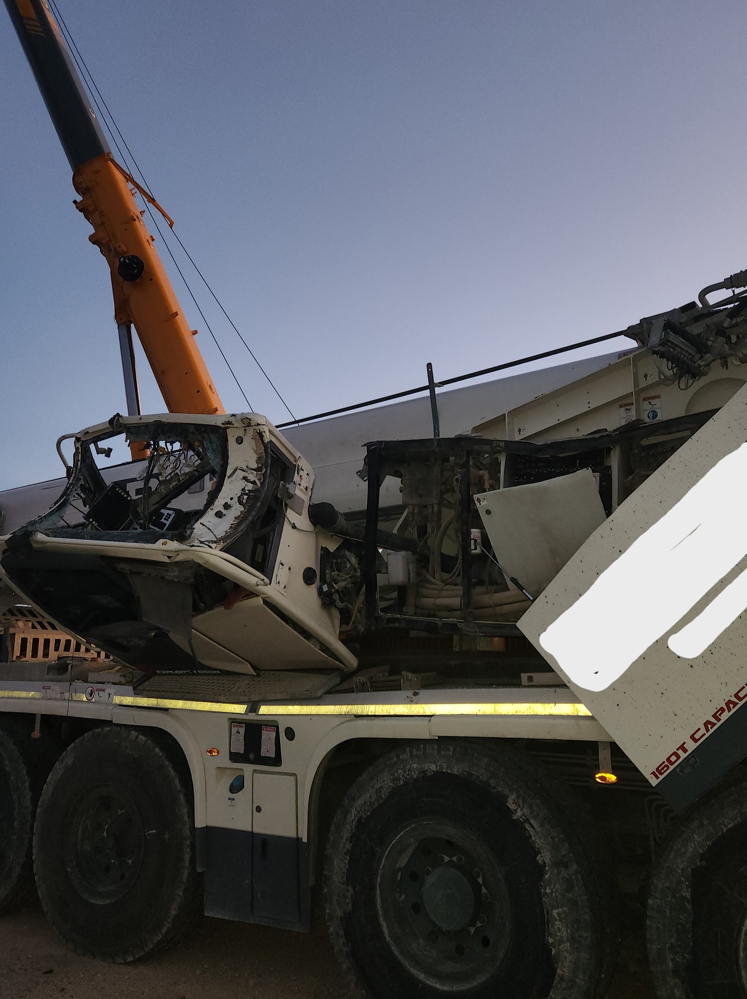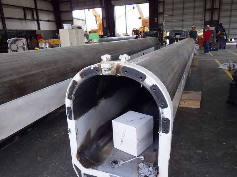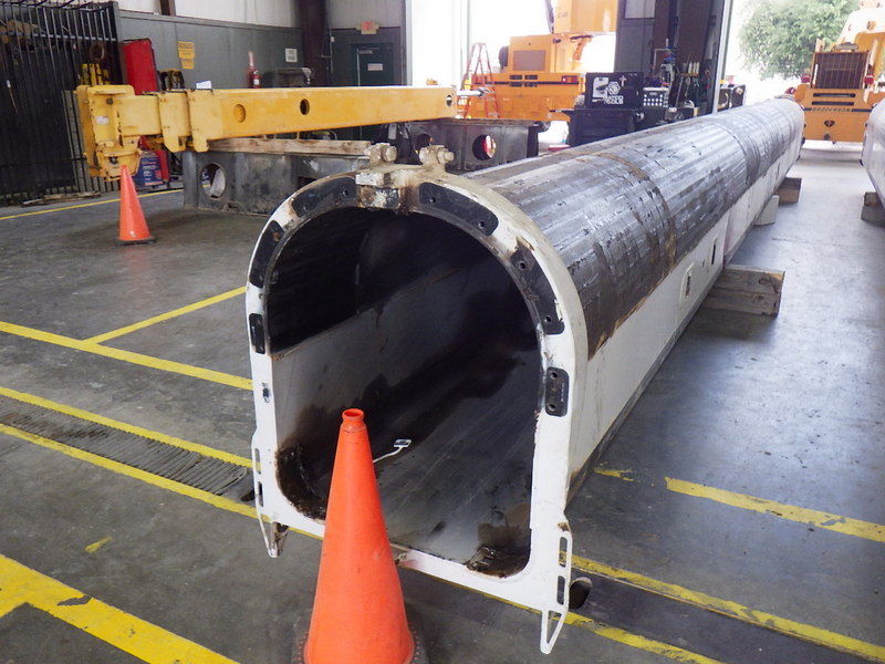 The subject unit sustained rollover damage with T-2 through T-5 extended. Upon recovery, it was disassembled revealing the T-4 insert is out of service and the T-2 and T-5 inserts have 3/16" run out. The unit will run and self-load. There has been teardown of the boom and partial disassembly of the rear accessories to gain access to the rear outrigger boxes