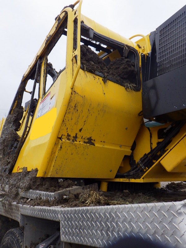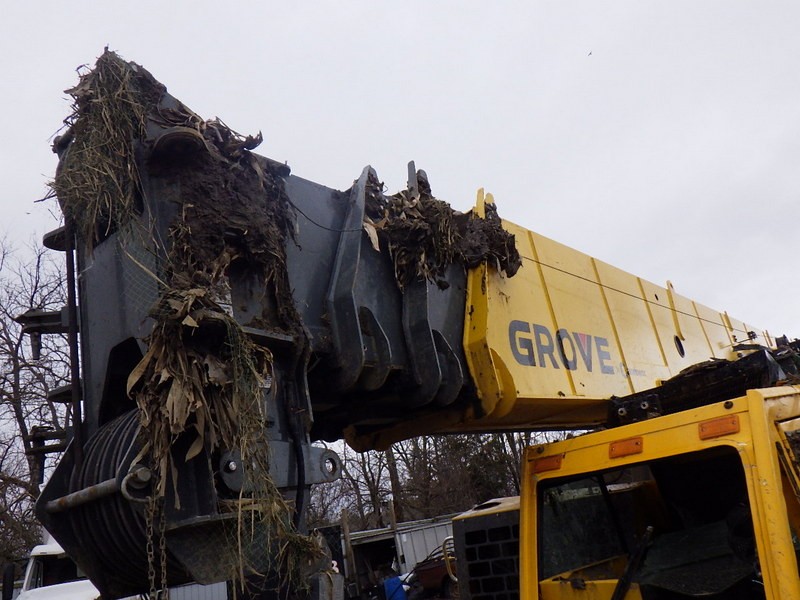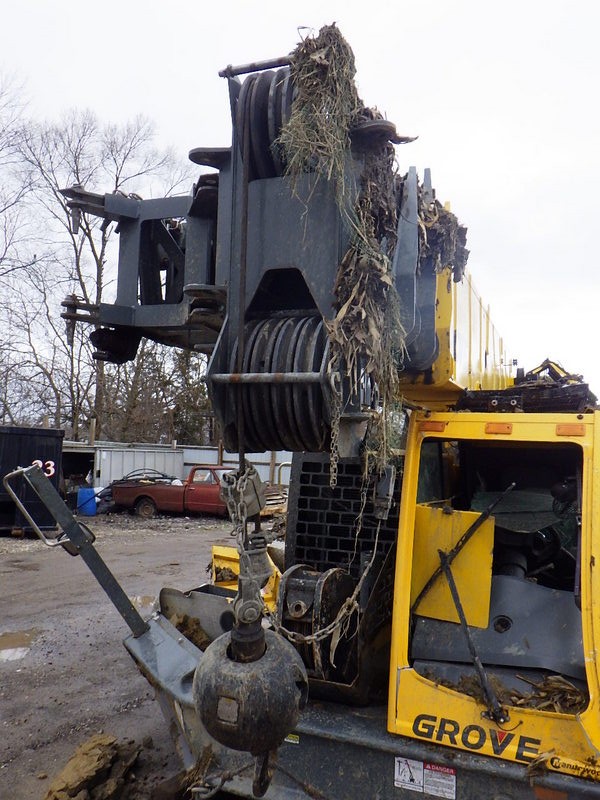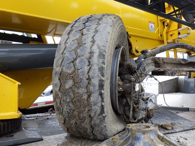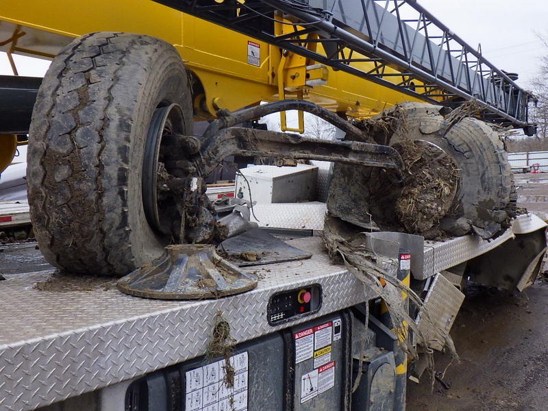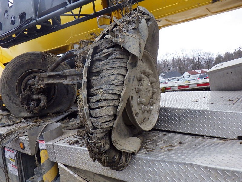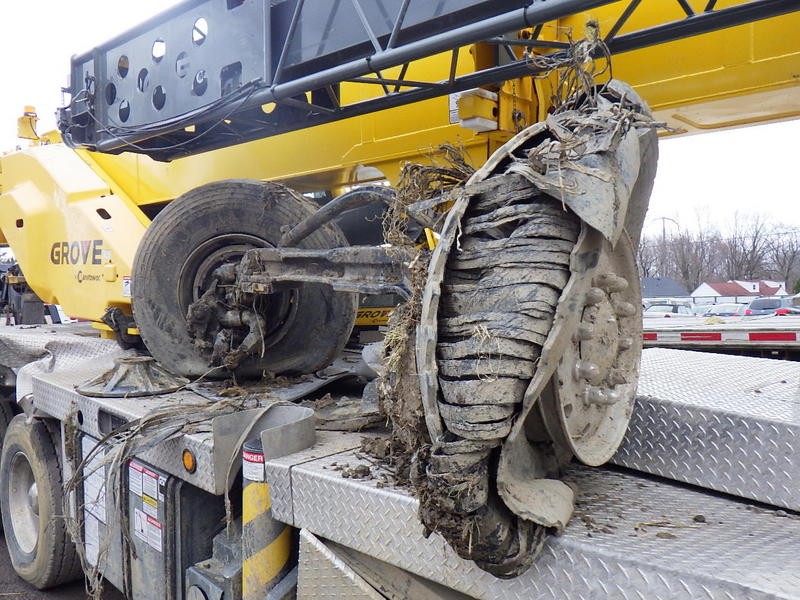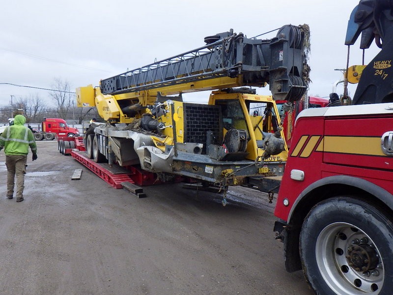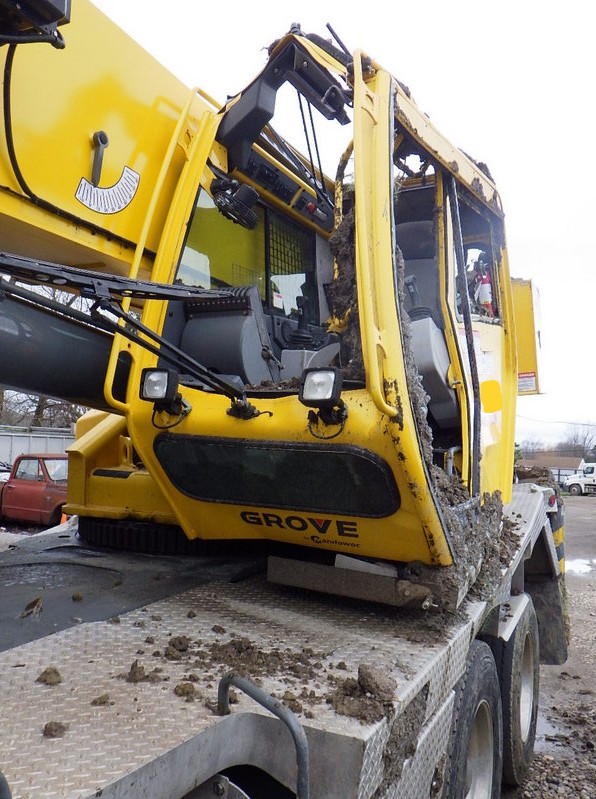 The lattice jib is undamaged, and the boom appears to have minor damage.